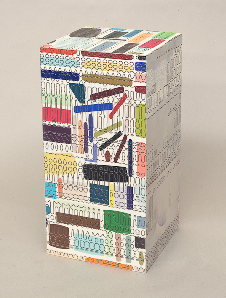 "museum in progress" - Kubus, Holz, weiß und silber beschichtet, Offsetfarbe, gefräst - 62 cm x 29,5 cm x 29,5 cm - 2021