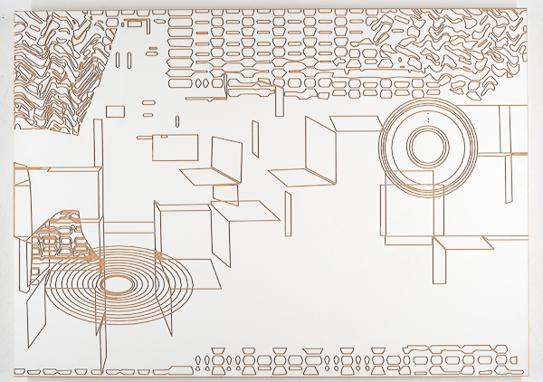 "museum in progress" - Holz, weiß beschichtet, gefräst - 83 cm x 117,5 cm - 2017 / 2018